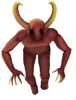 A pixel art red food demon from Spooky's Jump Scare Mansion with horns and claws, ready to pounce.