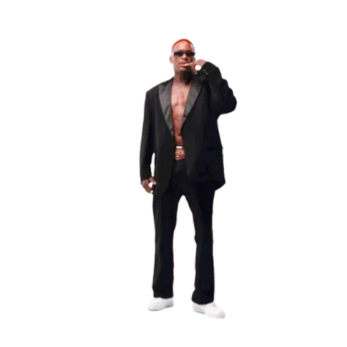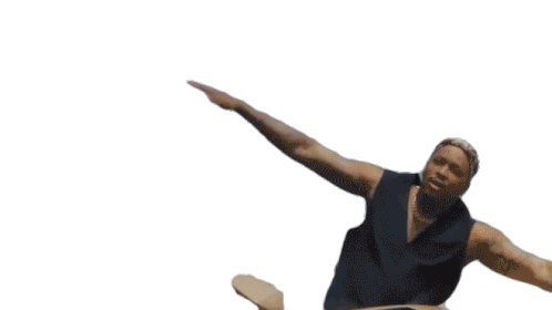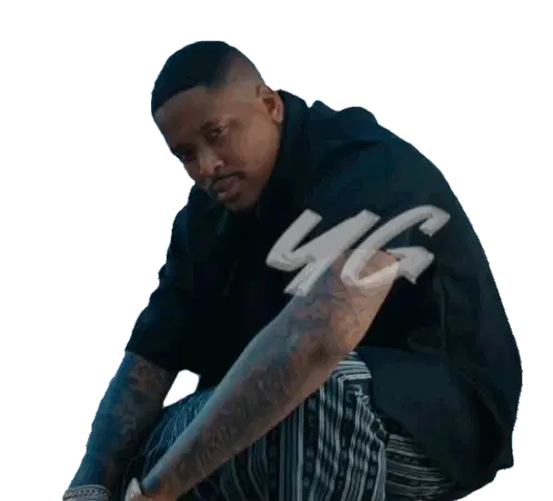 Yg, a man with light hair and beard, strikes a dynamic pose with arms outstretched, embodying a sense of freedom.