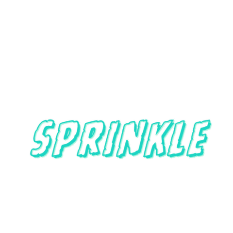 A vibrant animated sticker featuring the words 'Please Sprinkle' in a stylish teal font with a shadow effect.