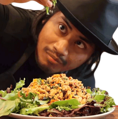 Joshua Walbolt carefully sprinkles fresh herbs onto a vibrant salad topped with a savory ground mixture, adding a finishing touch to his dish.