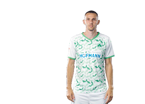 Branimir Hrgota of SpVgg Greuther Fürth celebrates a goal, showing his number 10 jersey and flexing his biceps.