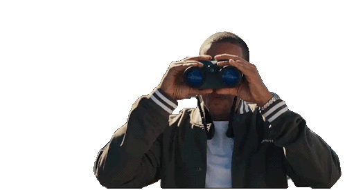 Ludacris as Tej Parker from Fast & Furious 6 peeking intently with binoculars, looking serious and observant.