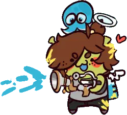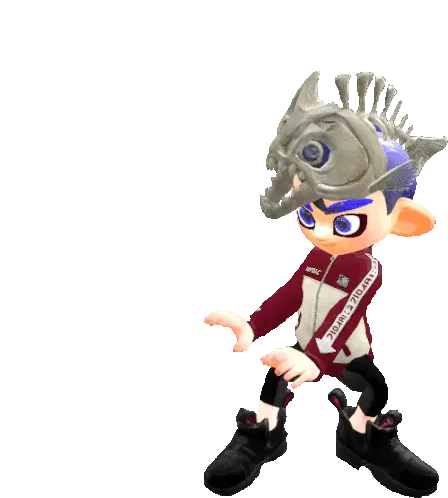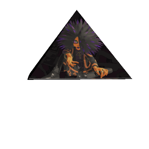 An animated sticker featuring Spyke from Splatoon, depicted on a rotating black pyramid with purple spiky hair and a distinctive outfit.