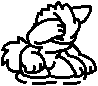 The Squiddog character from Changed, depicted in pixel art, scratching its head with a paw.
