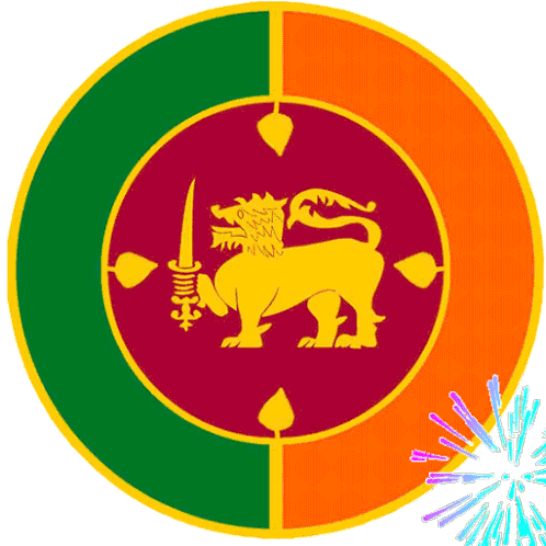 Vibrant animated sticker featuring the Sri Lankan national emblem with colorful fireworks, celebrating a festive occasion like New Year.
