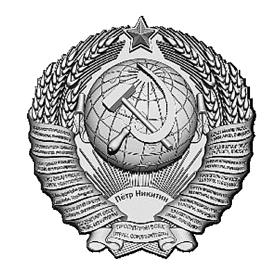 a black and white drawing of a coat of arms with a globe , hammer and sickle , and wheat .