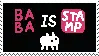 Animated sticker featuring two cartoon characters, one blue with an eye patch, showing a range of expressions within a stamp frame.