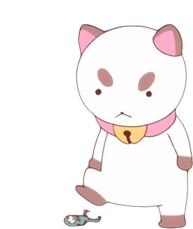 Puppycat from Bee and Puppycat angrily stomps its foot, crushing a small bug-like creature with a determined expression.