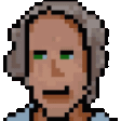 Pixel art sticker featuring a man's face, identified as Kevin, with green eyes, from Stamps Src20.