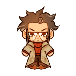 Chibi-style animated sticker of Stanford Pines from Gravity Falls, wearing glasses, a turtleneck, and a long coat.