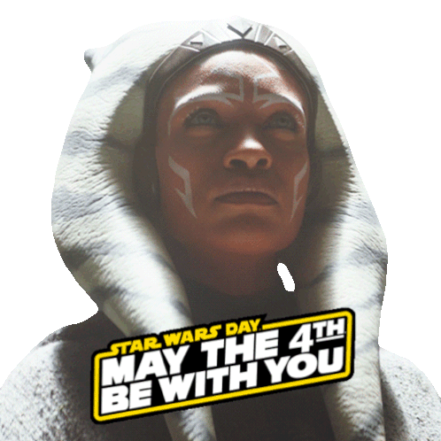 Ahsoka Tano celebrates Star Wars Day with the iconic 'May The 4th Be With You' message.