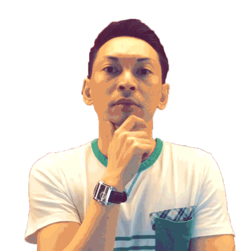 Ulysses Wang looks up, hand on chin, deep in thought. He appears to be hesitating or wondering about something.