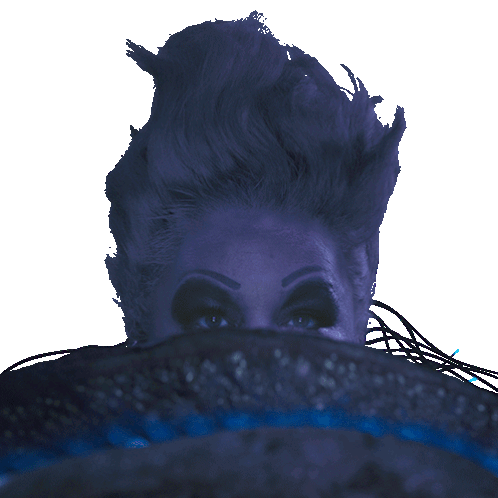 Ursula, played by Melissa McCarthy, peeks out and stares intently at you from The Little Mermaid. A mischievous and captivating gaze.