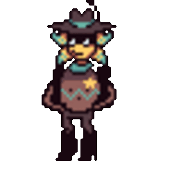 Starlo, the pixel art cowboy from Undertale Yellow, performs a playful stim jump. Energetic character animation.