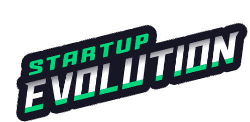 An animated sticker featuring the 'Startup Evolution' logo with dynamic text, ideal for business and innovation themes.