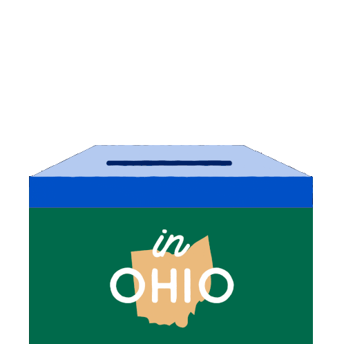 A ballot being cast into a ballot box that says 'in OHIO' with 'VOTE EARLY' appearing on the ballot, encouraging early voting.