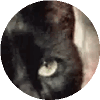 Close-up of a black cat's light-colored eye in a circular frame, with a 'Stay Cool' vibe.