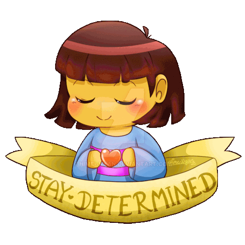 a drawing of a girl holding a heart with a banner that says stay determined