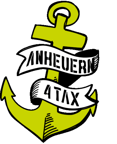 A vibrant anchor logo for STBV STBVERB, featuring the German phrase 'Anheuern 4 Tax' on a banner, symbolizing recruitment for tax professionals.