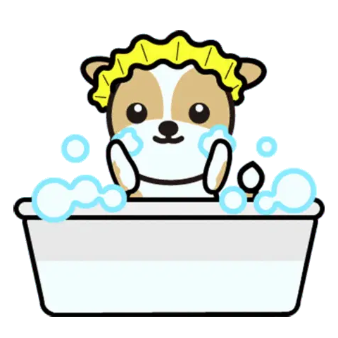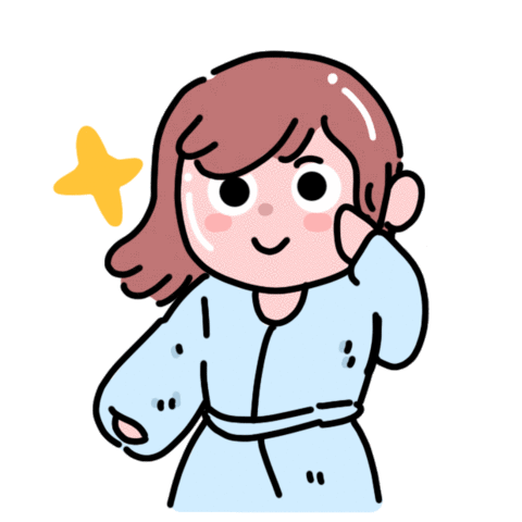 A cheerful cartoon girl with brown hair winks and smiles while wearing a light blue bath gown, ready for a relaxing steam shower.
