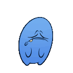 A blue, blob-like character with a sad expression, featuring a single tooth and downturned eyes, likely a Steam emote.