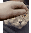 Stella the cat enjoys gentle pets on her face, closing her eyes in contentment and showing affection.