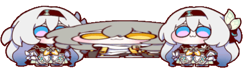 Stelle and Firefly from Honkai Star Rail in a cute animated sticker, featuring a character with a neutral expression and twitching ears.