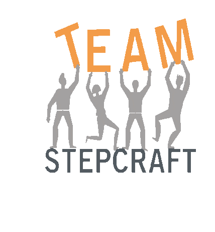 Animated sticker featuring four figures holding up the word 'TEAM', with 'STEPCRAFT' written below, symbolizing teamwork.