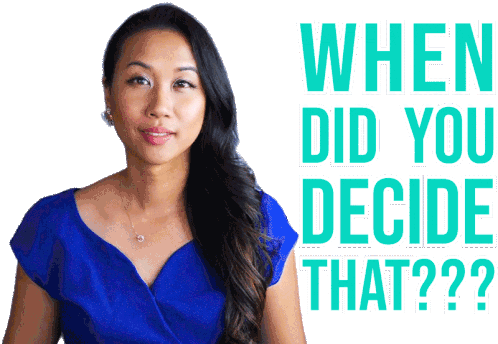Stephanieliu asks 'When Did You Decide That?' with a questioning and then smiling expression.