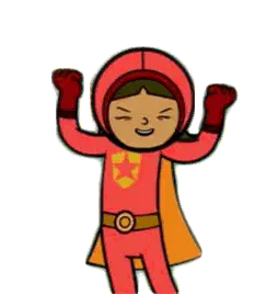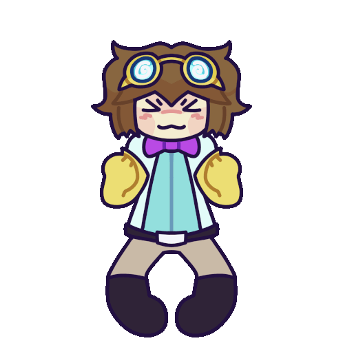 Steven Boxleitner from Wordgirl, a cheerful cartoon character with goggles and a bow tie, happily dances and bounces.
