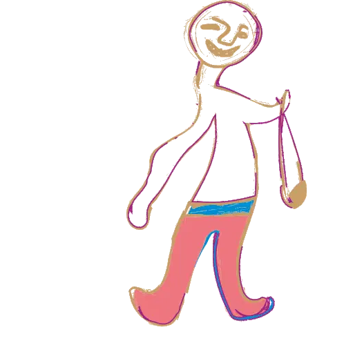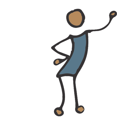 Animated stick figure with a blue body and brown head, posing with one hand on its hip and the other raised, from Maddeals.