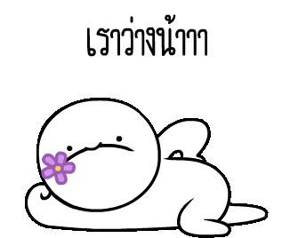 A cute, round-headed cartoon character lying down, holding a purple flower in its mouth, with the caption "I'm free~".
