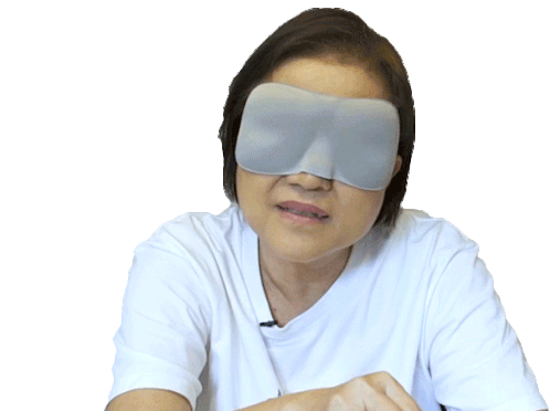 A woman, possibly Wanisa Panichwit or Wan Thanakrit's mother, wearing a blindfold, looking stressed and bored with loading icons.