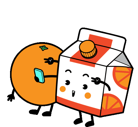 Joo Joo and the cheerful orange juice box character pose for a fun selfie, capturing a moment of friendship.
