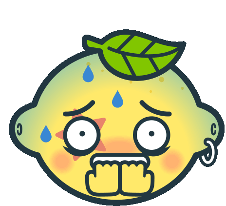 A cute lemon character with wide, worried eyes and a star blush, biting its nails in fear and anxiety.