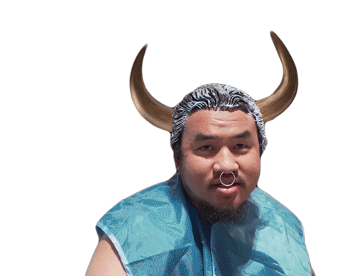 Nongmax wears buffalo horns and a nose ring, with the Thai word 'ควาย' (buffalo/stupid) appearing around him.