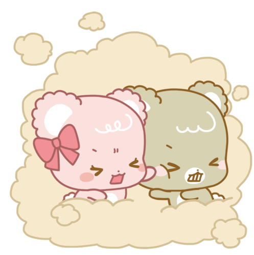 Mocha and Latte from Sugar Cubs are having a heated argument, surrounded by angry clouds. A cute but intense fight.
