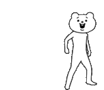 Betakkuma, the energetic white bear-like character, performs a wild and joyful dance, expressing extreme excitement.
