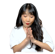 Softpomz claps her hands excitedly, expressing "Wow" and "Yay" with a happy smile.
