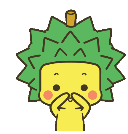 A cute durian character, Durein Durian, forms a heart with its hands, expressing love and affection.