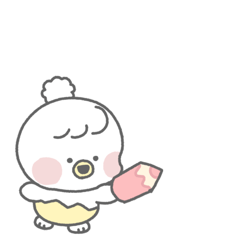 Piyomaru, the cute chick, draws a pink circle with a pencil, creating a cheerful doodle.