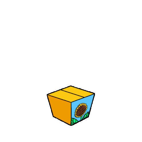 A cute butterfly character from Bug City emerges from a sunflower-decorated box to say "GM" in this animated sticker.