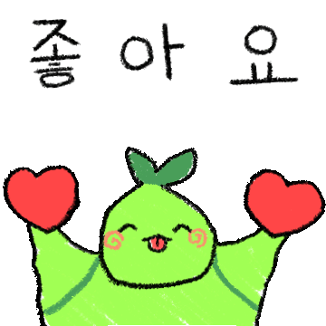 A cute green Mokoko character from Lost Ark holds up two red hearts, expressing "Like" in Korean. Perfect for showing affection.