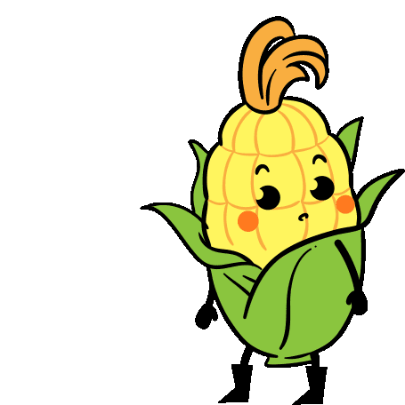 A cartoon corn character looks startled and scared with wide eyes and hands up in a surprised reaction.
