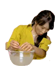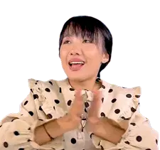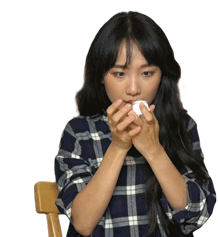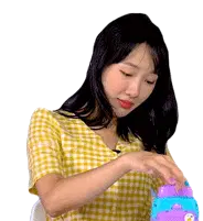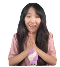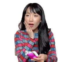 Softpomz reacts with wide-eyed surprise and a big smile while holding a small white object. Her excitement is palpable.