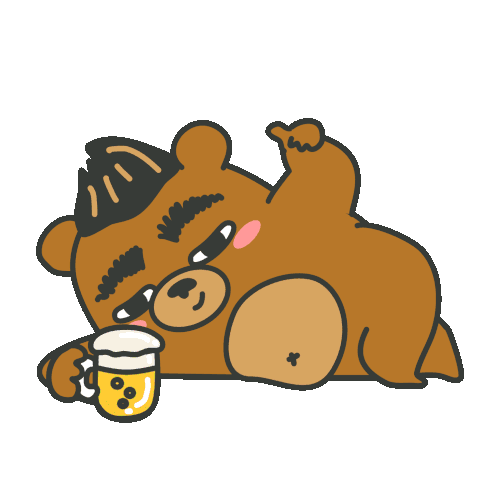 Maludbear cartoon character relaxing with a mug of beer, looking a bit drunk and enjoying the moment.
