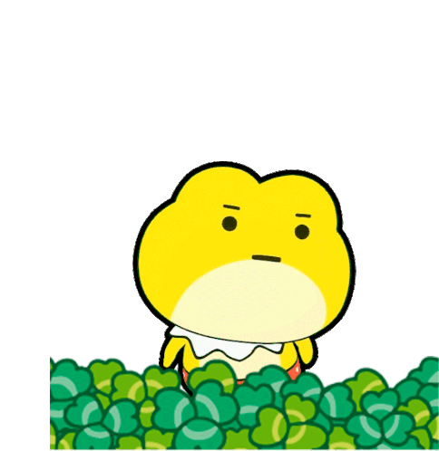A cute yellow frog character picks up a lucky four-leaf clover and expresses gratitude with Korean text "ㄱ ㅅ" (Thank You).