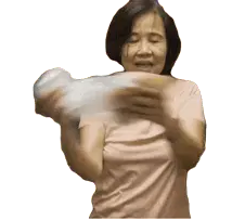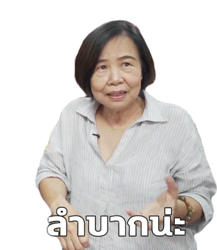 แม่ของโค้ดดี้ (หม่าม้าโค้ด) gestures while saying 'ลำบากน่ะ' (It's difficult), expressing a feeling of hardship.