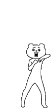 Betakkuma, the energetic bear, performs a dynamic dance and fighting moves, including an elbow strike.
