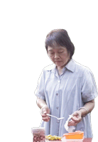 Godji (Tatchakorn Boonlapayanan) reacts with 'อื้อหือ!' and 'โห!' while preparing food, showing surprise or amazement.